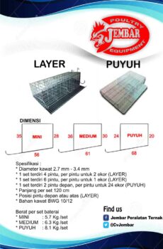 - Diameter kawat tebal (2,8–3,4 mm) sehingga kuat menopang beban ayam.