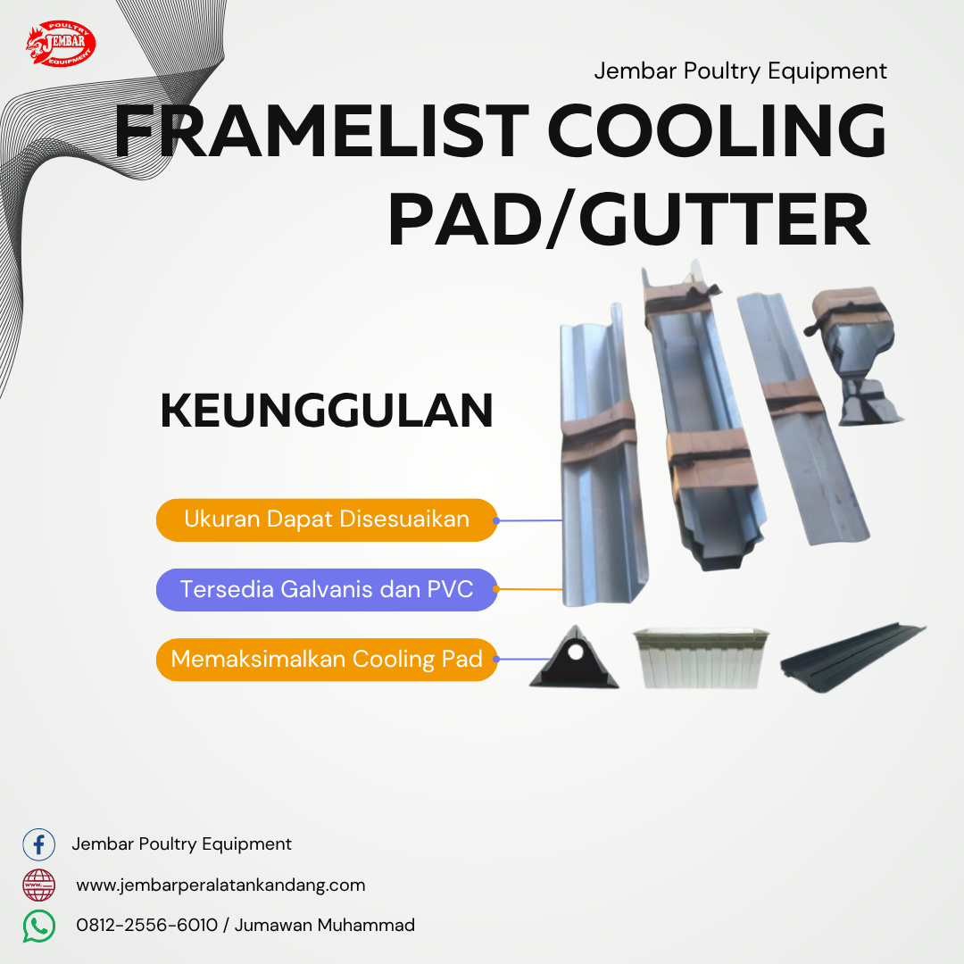 Sudah siap meningkatkan efisiensi ventilasi di industri atau kandang Anda? Tertarik dengan Gutter / Framelist Cooling Pad atau masih punya pertanyaan lainnya? Jangan ragu untuk menghubungi kami langsung di 0812-2556-6010. Tim Jembar Poultry Equipment siap melayani Anda dengan layanan terbaik.