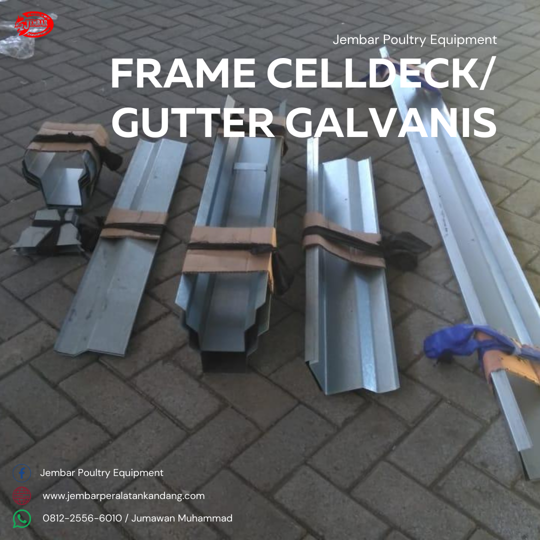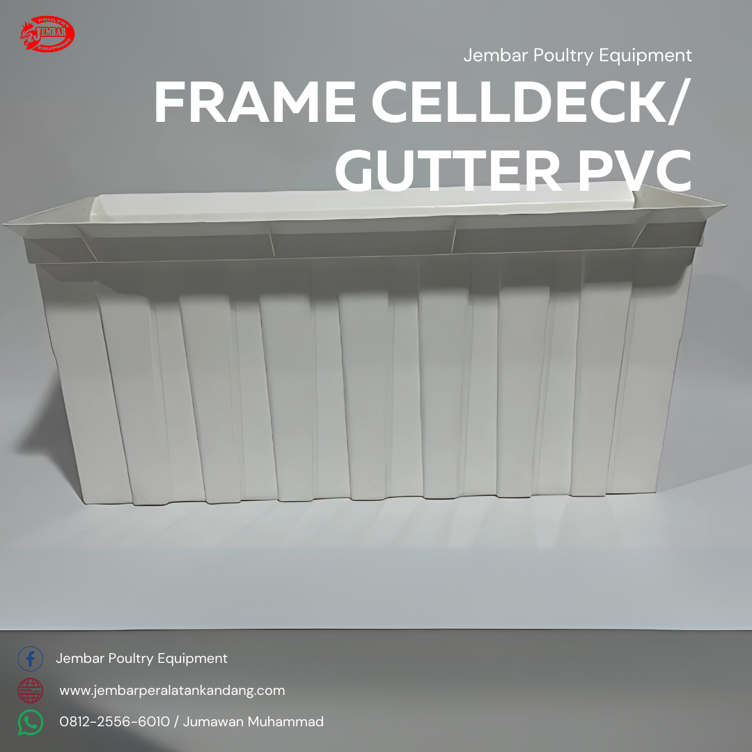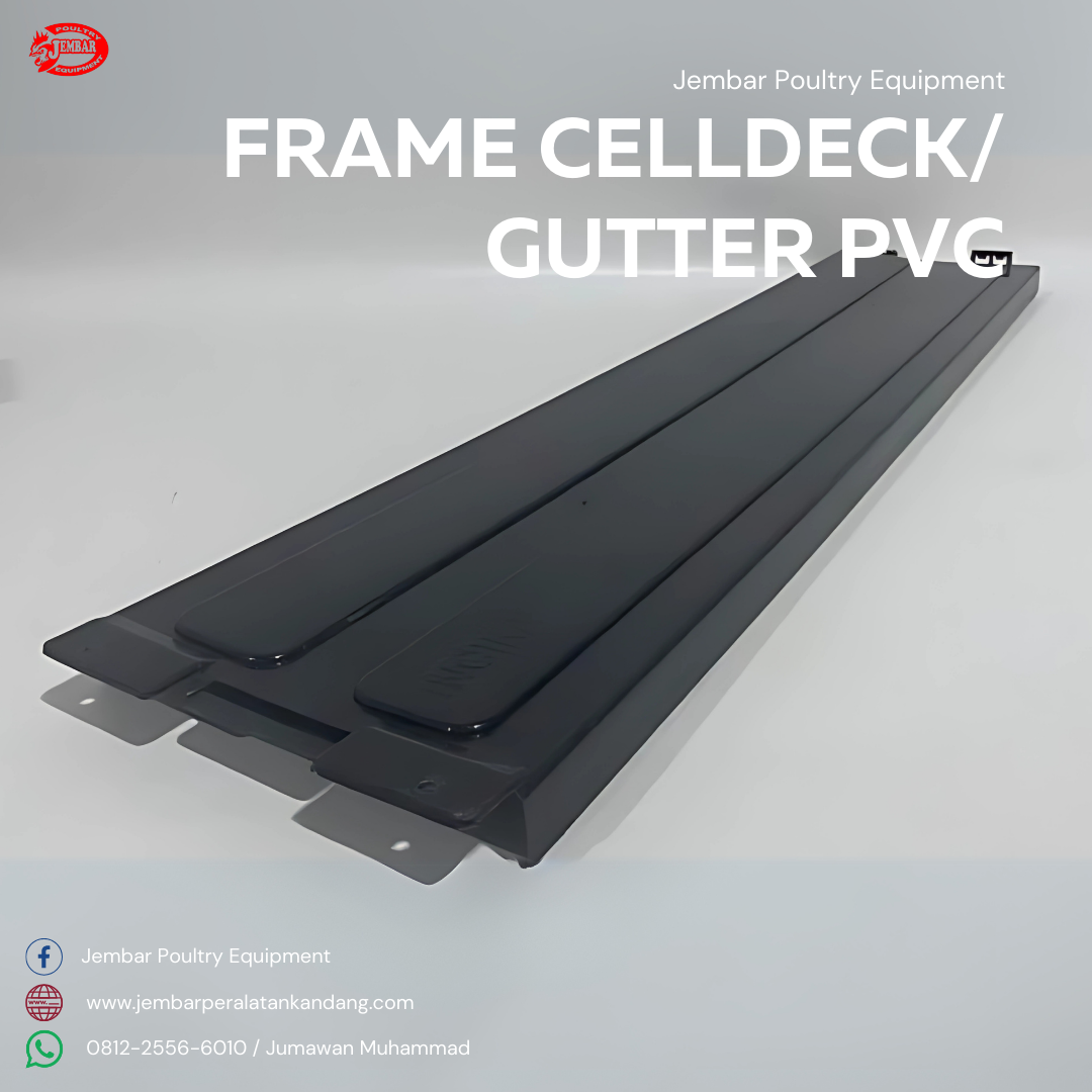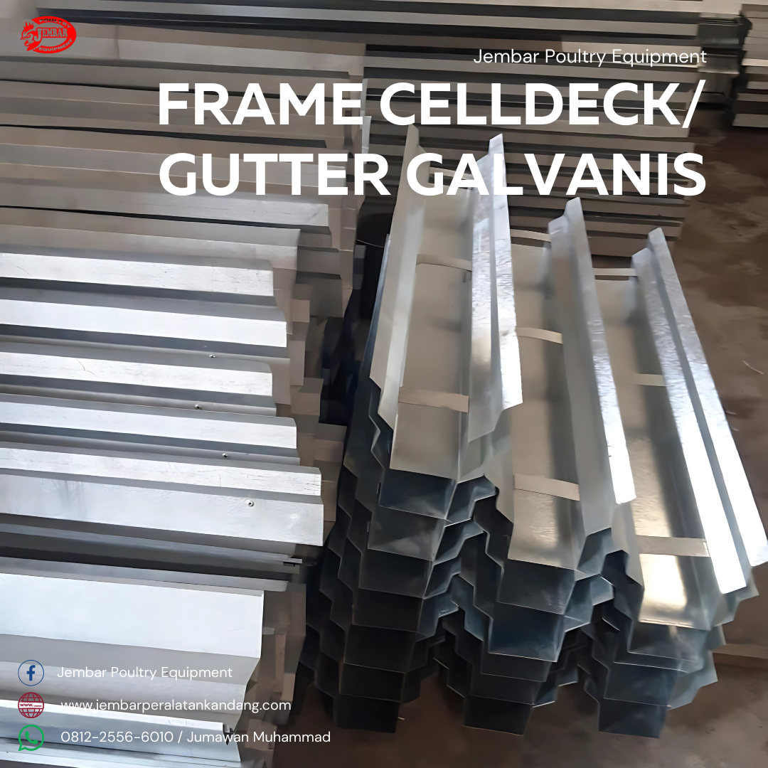 Gutter / Framelist Cooling Pad Galvanis & PVC ㅡ Dalam sistem ventilasi evaporatif seperti kandang closed house atau greenhouse, performa cooling pad sangat terpengaruh oleh konstruksi pendukungnya. Gutter atau Framelist Cooling Pad dari Jembar Poultry Equipment tersedia dalam dua pilihan material unggulan, yaitu Galvanis Anti Karat dan PVC Tebal Anti UV, menjadikannya solusi ideal untuk distribusi air dan struktur penyangga celldeck yang kokoh, rapi, dan tahan lama.