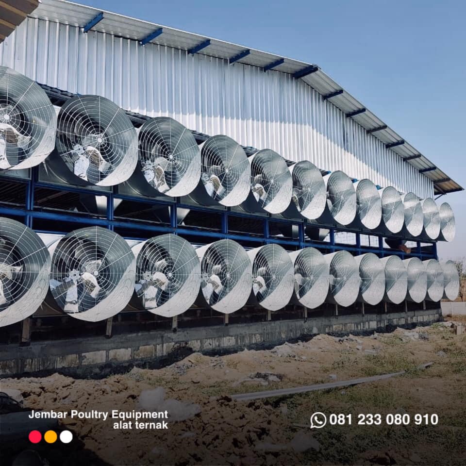 Boxfan 50 inch ukuran 138 x 138 x 45 cm dengan sistem bearing. Tersedia motor Nosch, Siemens, Innomotics, WEG, Louyite. Cocok untuk ventilasi industri dan peternakan.